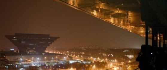 圖為世博園內(nèi)一軸四館將參加“地球一小時”活動,29日晚熄燈進(jìn)行燈光調(diào)試