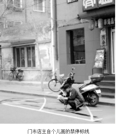 “看這位大哥專業(yè)不?把他家門(mén)前的停車(chē)位給涂沒(méi)有了,還畫(huà)上了標(biāo)線。有才吧?仔細(xì)看,他把箭頭用信那水給涂沒(méi)有了!边@是昨天“@公民記者李憲明”的微博上爆出的新鮮事兒。