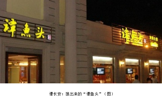 “慢慢的開始有了連鎖經(jīng)營的概念!弊T長安說道,“我認(rèn)為我最成功的地方在于,表面上看‘譚魚頭’是在開店,其實我們是在把無形資產(chǎn)資本化。在北京開店時,我沒出一分錢,我?guī)е业亩拱、找了一幫農(nóng)民娃娃帶到了北京。我建立了一種連鎖加盟的模式,不需要出一分錢就可以占有35%到55%的股份。同時,在一個‘吃味道’的年代,我抓住了機(jī)會。”