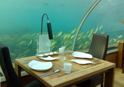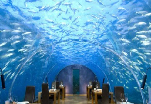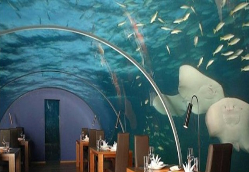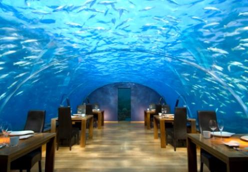 馬爾代夫港麗度假開設(shè)的第一個(gè)全玻璃海底餐廳。該餐廳為了慶祝他們的周年紀(jì)念而建,為客人也提供了體驗(yàn)機(jī)會(huì),不僅吃海下的,還在海下吃,睡在海下。真的是不可思議。意境也不用說了,是多么壯麗。