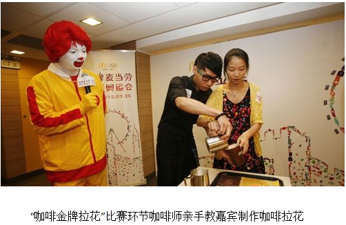 在廣州,麥當(dāng)勞特別推出了3家奧運(yùn)主題餐廳,分別是今日廣場餐廳、天津大廈餐廳和富景花園餐廳。除了主題餐廳,麥當(dāng)勞在奧運(yùn)期間還在24小時(shí)餐廳提供了賽事直播,消費(fèi)者可以在第一時(shí)間觀看精彩賽事。
