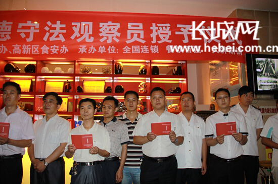 “食品藥品行業(yè)尚德守法觀察員在我市尚屬一項創(chuàng)新性舉措,構(gòu)建了食品藥品安全監(jiān)管的新平臺,有利于強(qiáng)化市民食品藥品安全意識,增進(jìn)公眾對食品藥品監(jiān)管工作的參與度,”石家莊市食藥監(jiān)局工作人員說。