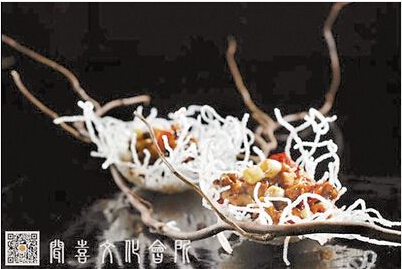 比如,一道名叫玉樹(shù)后庭花的菜,其實(shí)就是宮保豆腐,造型非常優(yōu)美,將宮保豆腐裝在像是樹(shù)枝的丫上,每個(gè)丫上還有一個(gè)雪白的類(lèi)似鳥(niǎo)巢的盛器,看起來(lái)晶瑩剔透。