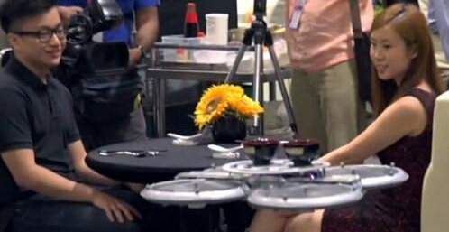 利用無(wú)人操控飛行器科技概念,Infinium Robotics公司研發(fā)出“自助無(wú)人操控飛行托盤”,服務(wù)生只要預(yù)先輸入桌號(hào)后,把食物放在托盤上,托盤就會(huì)自動(dòng)飛行到客人附近。