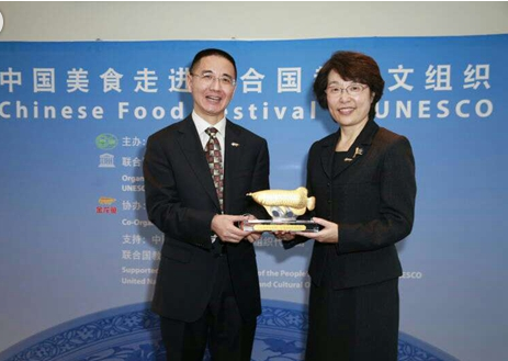 圖為聯(lián)合國(guó)教科文組織副總干事張秀琴(右一)出席中國(guó)美食申遺活動(dòng)