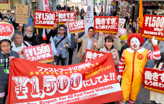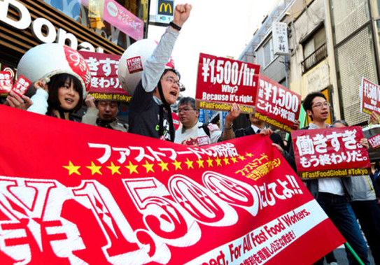 日本快餐業(yè)員工鬧市游行 要求上調(diào)最低時薪