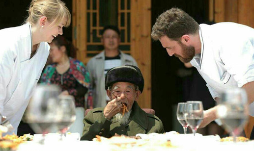 4月15日,貴州銅仁江口縣云舍村村民曾金釵為了給自己年邁92歲的公公過壽,通過村淘服務(wù)站預(yù)定了十份意大利套餐。意外的是,兩天過后,她見到的并不是烹飪好的意大利餐,而是新鮮的食材和意大利當(dāng)?shù)刂麖N師。這著實(shí)把曾金釵驚著了!拔乙闹皇谴猴L(fēng),你卻把整個(gè)春天送給我了!