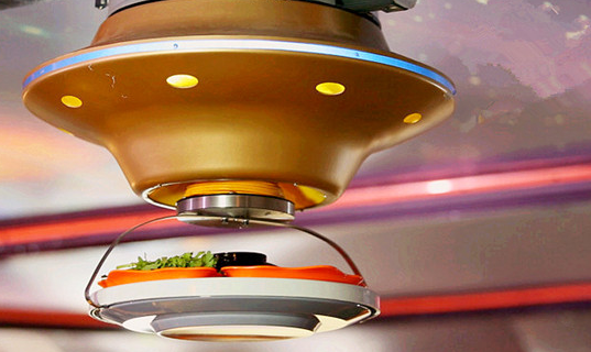 勁爆!廣東驚現(xiàn)飛碟傳菜餐廳!