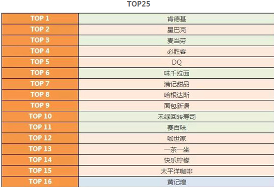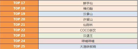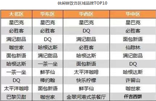 休閑餐飲各區(qū)域品牌TOP10