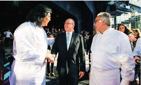 2012年11月的某一天,摩納哥路易十五餐廳里聚集了240位來(lái)自世界各地的名廚,這些廚師總共擁有300顆米其林星星,全部是擁有著“世界御廚”美譽(yù)的法國(guó)頂級(jí)大廚Alain Ducasse的邀請(qǐng),來(lái)參加Alain Ducasse集團(tuán)25周年慶典。大董是其中唯一一位華人廚師,合影時(shí)主辦方特意將他安排在最前排。
