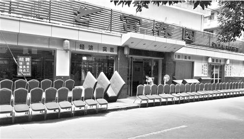 在湖東支路路口,抽水機(jī)還在不停工作,不少店老板站在店門口發(fā)愁地看著店內(nèi)。一家餐館的服務(wù)員把店內(nèi)椅子全部搬出,擺在路兩旁曬。店內(nèi)空無一人,服務(wù)員還在忙碌著打掃衛(wèi)生。