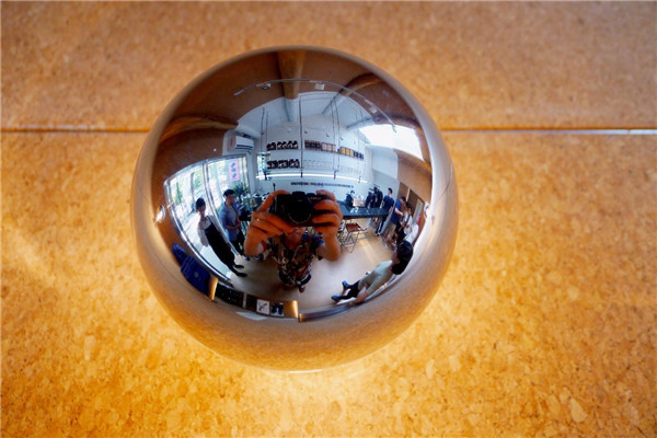 軟木墻一側(cè)的電鍍鎢絲燈,可以保護對面咖啡師的雙眼不被光照直接影響,另一方面成為趣味的拍攝區(qū),貼著球面按下快門就可以囊括店鋪全景。