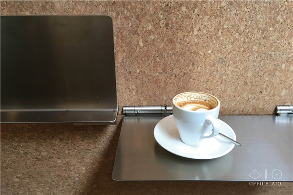 墻邊的不銹鋼板適合趕時間的顧客站立享用飲品,或等待時使用;吧臺延伸到門外的平臺,也為戶外提供了座位/站位。店中座椅選擇了高腳皮椅,店外水泥平臺上特意劃分了不在主動線上的兩個區(qū)塊,以不銹鋼板覆蓋,變成了應付過多客流的臺階座位。說實話都不是“久坐之處”,這樣設(shè)計明確的空間,客人自然不會當它是“閑來無事躺上半天”的地方。