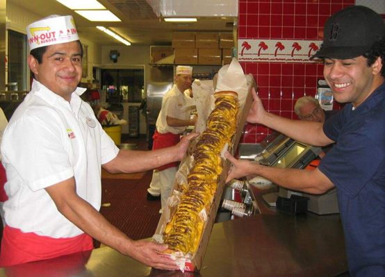 雖說IN-N-OUT的菜單上只有三種漢堡,但其實(shí)老顧客都知道,它還有個(gè)“隱秘菜單”才是精髓!IN-N-OUT秉承著“顧客就是一切”的理念,顧客的需求盡量滿足。曾經(jīng)腦(喪)洞(心)大(。╅_(狂)的顧客要了個(gè)100片面包加100片牛肉的百層漢堡,IN-N-OUT還真給他做了。