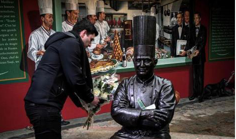 民眾給博古斯的銅像獻(xiàn)花,悼念這位法國(guó)廚神。