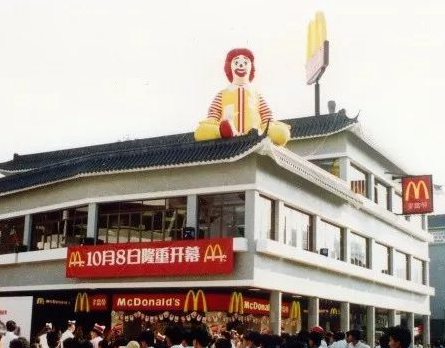 圖:1990年麥當勞在深圳開出中國第一家門店的照片。據(jù)悉,由于太過火爆,當天深圳餐廳還從香港緊急調來了500多名員工幫忙。