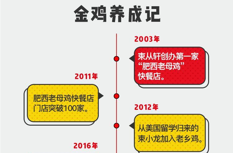 憑借著優(yōu)質(zhì)的產(chǎn)品以及精細(xì)化的管理,2011年,肥西老母雞快餐店門店突破100家。2012年,從美國留學(xué)歸來的束小龍加入了進(jìn)來,給企業(yè)注入了新鮮的血液。