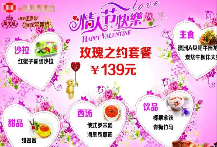 在情人節(jié)期間,餐廳可以推出情人節(jié)專屬套餐。